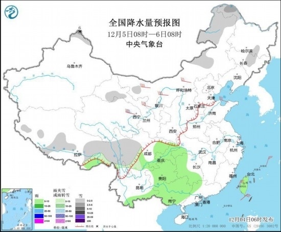 全國降水量預(yù)報(bào)圖(12月5日08時(shí)-6日08時(shí))