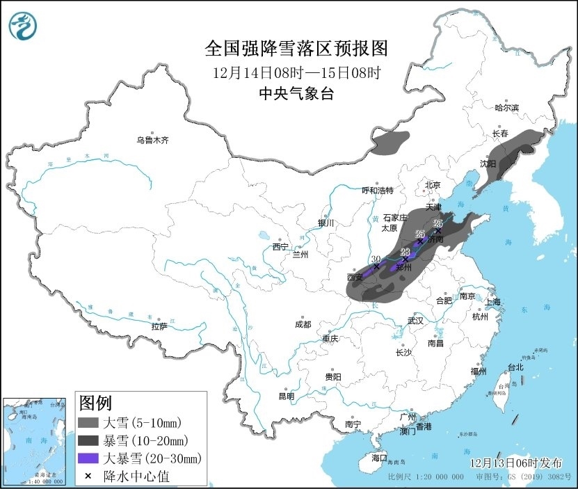 除寒潮天氣外,大范圍的雨雪天氣也將上線。預(yù)計12月13日至15日,新疆北部、西北地區(qū)東部、內(nèi)蒙古、華北、黃淮中北部、東北地區(qū)中南部及青藏高原東部有小到中雪,部分地區(qū)有大到暴雪,局地有大暴雪;黃淮南部、江淮、江漢、重慶北部及江南等地部分地區(qū)有中到大雨、局地暴雨。