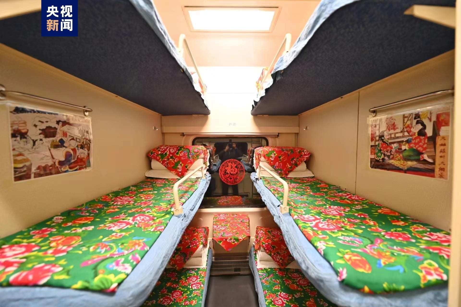 東北紅綠花、傳統(tǒng)年畫,把特色“東北炕頭”搬進火車車廂。12月15日,以東北民俗風格打造的哈爾濱至漠河K7041次主題車廂旅客列車正式啟程,這是今冬黑龍江省開行的首列東北民俗文化主題列車。