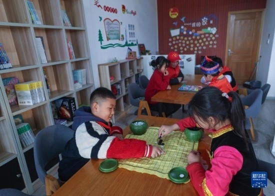 12月20日,秀山小學(xué)學(xué)生在“民生小鋪”等候家長時(shí)下棋。