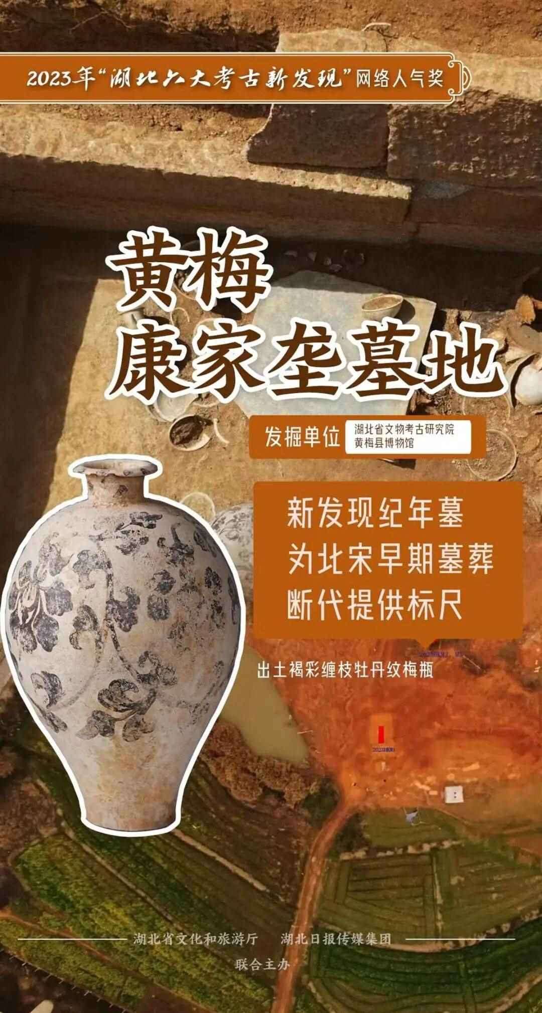 墓地位于黃梅縣濯港鎮(zhèn)程光村三組康家壟,其中M1為北宋紀(jì)年墓,為北宋早期墓葬斷代提供標(biāo)尺,墓葬形制特點突出,出土遺物數(shù)量豐富,尤以褐彩纏枝牡丹紋梅瓶等瓷器最顯珍貴。