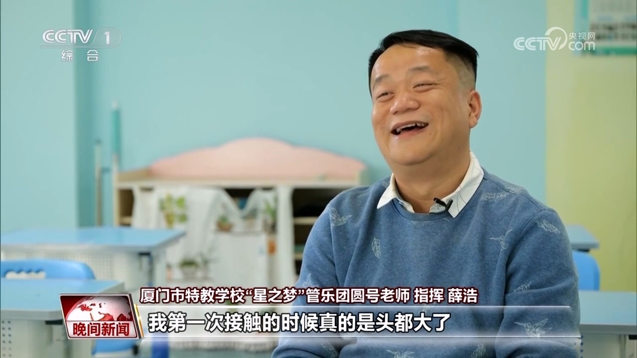 廈門市特教學(xué)?!靶侵畨?mèng)”管樂(lè)團(tuán)長(zhǎng)笛老師 杜佳鈺:因?yàn)檎f(shuō)音樂(lè)是全人類共通的語(yǔ)言,我希望這件事情的意義也是能不要把這些孩子排除在全人類的音樂(lè)的共同事業(yè)的范圍之外。
