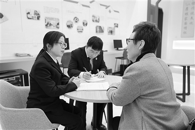 圖為案件承辦人向該案委托代理人深入了解案件情況,共同尋找實質解紛之法。