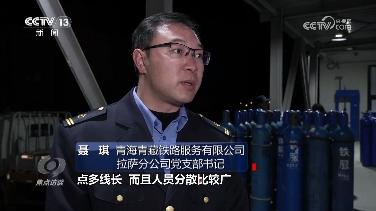 央視網(wǎng)消息(焦點訪談):2024年春運已經(jīng)拉開大幕,全國鐵路預(yù)計發(fā)送旅客4.8億人次,日均1200萬人次,同比2023年春運增長37.9%??缭绞澜缥菁沟那嗖罔F路被人們稱作“天路”,它全長1956公里,其中有960公里位于海拔4000米以上的高原之上。為了保證這條天路的正常運行,許多鐵路員工承受著嚴(yán)重的高原反應(yīng)常年堅守在這里。對他們而言,有一種物資重要性幾乎就等同于食物和水,這種物資就是氧氣。有一群天路送氧人常年奔波在雪域高原,任務(wù)就是把一瓶瓶氧氣送到天路沿線的站點。就在不久前,記者隨同天路送氧人一起踏上了送氧之路。