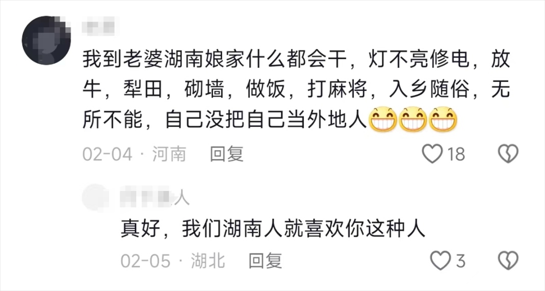 看到“女婿來丈母娘家的統(tǒng)一狀態(tài)”上熱搜,有的外地媳婦表示,自己也是一樣,在過年時(shí)充滿尷尬。