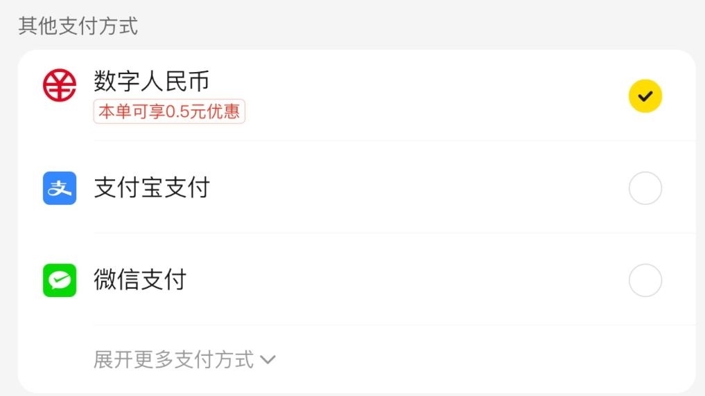 第三步,選擇使用數(shù)字人民幣支付。