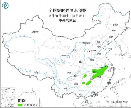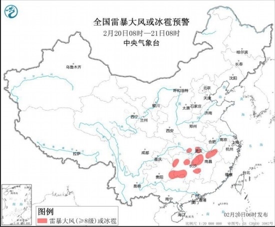 中央氣象臺2月20日6時繼續(xù)發(fā)布強(qiáng)對流天氣藍(lán)色預(yù)警: