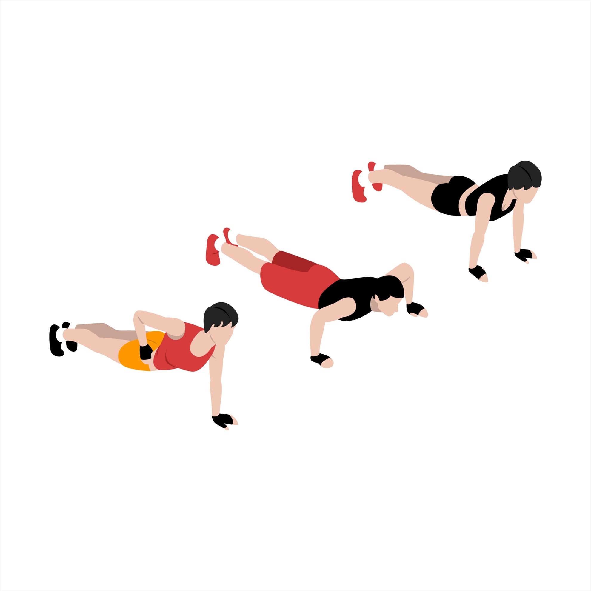 俯臥撐主要鍛煉上肢、腰腹部肌肉,尤其是胸大肌,是一種簡單易行卻十分有效的力量訓(xùn)練手段。練習(xí)俯臥撐時(shí),雙手之間的距離以比肩略寬為宜,這樣做會相對簡單和安全,能避免駝背、塌腰。