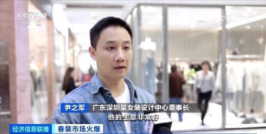 廣東深圳某女裝設(shè)計中心董事長 尹之軍:今年的春裝賣得非常好,同比增長20%左右。因為天氣的問題,夏裝反而沒有想象中那么好,春裝準備足夠充分的商戶,生意非常好,貨不夠賣。但是只準備夏裝的商戶,他們現(xiàn)在都在期盼天氣趕緊熱起來。