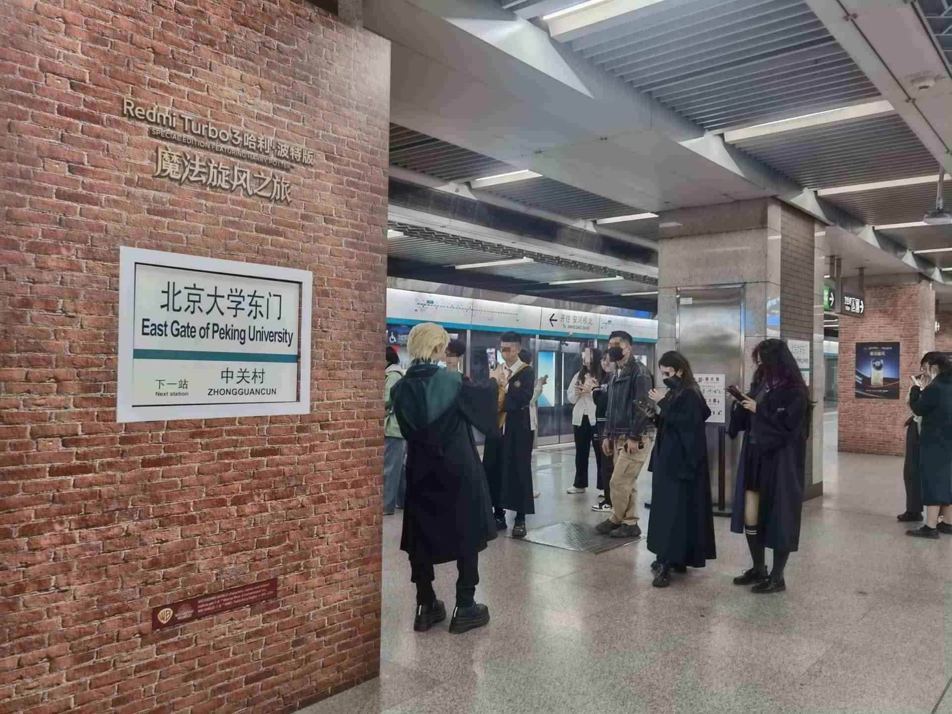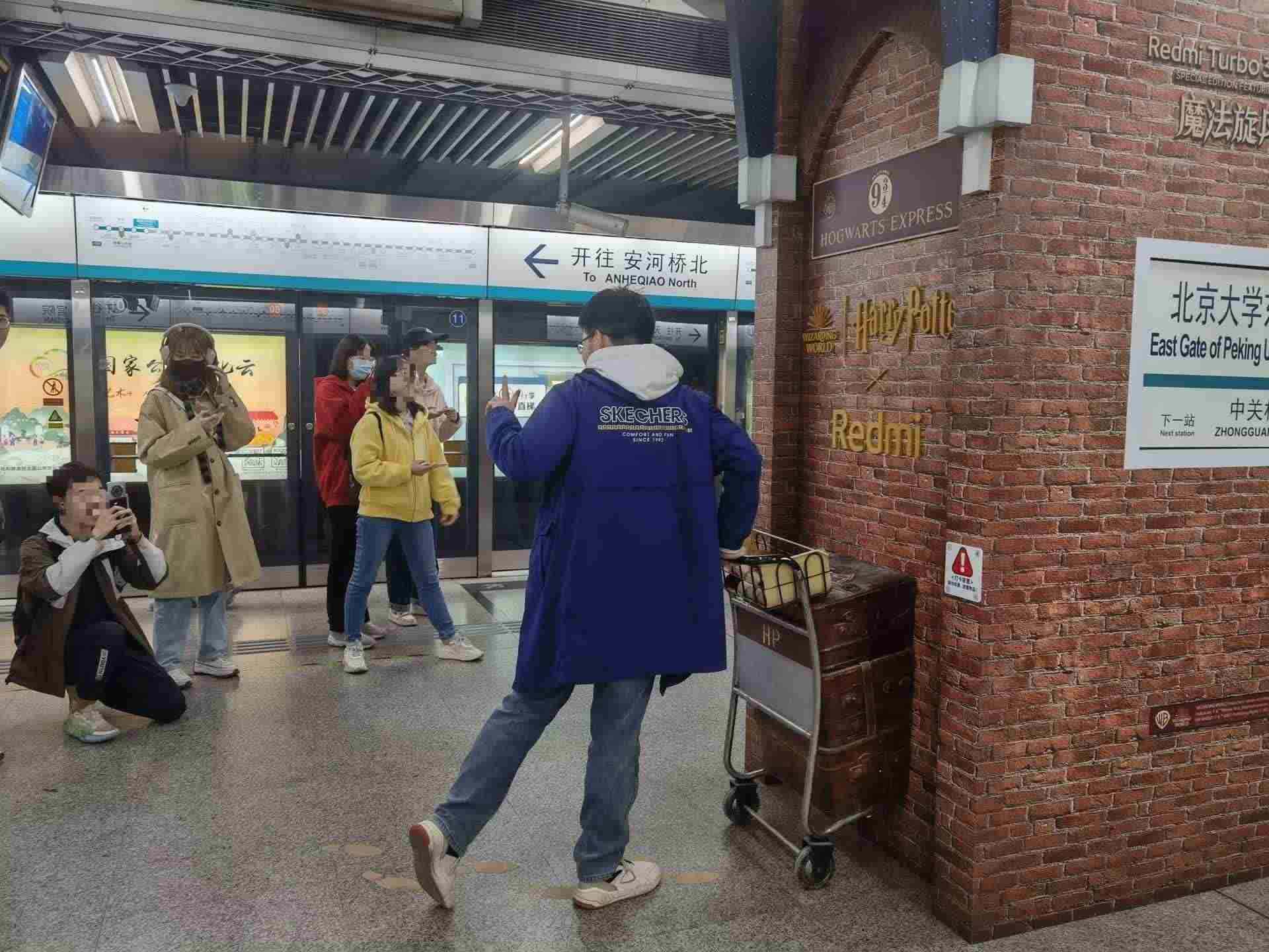 北京大學東門地鐵站內,眾多市民打卡拍照哈利·波特站臺