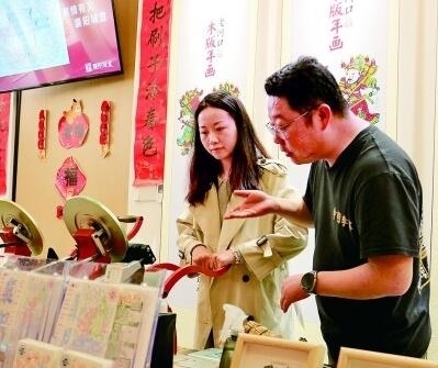 游客在襄陽(yáng)古城管家巷體驗(yàn)老河口木版年畫文創(chuàng)產(chǎn)品制作。本報(bào)記者 郭冠東攝