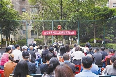 近日,江西省吉安市吉州區(qū)人民法院民事庭將巡回法庭搬進了桃源盛景小區(qū),對三起物業(yè)服務(wù)合同糾紛案進行了公開審理,并邀請社區(qū)代表、小區(qū)部分業(yè)主旁聽。巡回法庭采取了“庭審+普法”的形式以案釋法,引導(dǎo)業(yè)主合理維權(quán),倡導(dǎo)物業(yè)公司積極履行合同義務(wù),取得了良好的效果。圖為巡回審理現(xiàn)場。