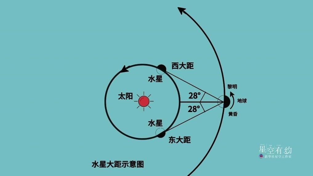 中國天文學(xué)會會員、天津市天文學(xué)會理事楊婧表示,想一睹水星“真容”,要等到它與太陽的角距離達(dá)到最大時,也就是從地球上看水星距離太陽最遠(yuǎn)的位置。如果水星出現(xiàn)在太陽東邊,稱為東大距,此時水星在黃昏時的西邊低空出現(xiàn);如果水星出現(xiàn)在太陽西邊,稱為西大距,此時水星在黎明時的東方低空出現(xiàn)。每年通常會有6至7次水星大距,其中包括東大距和西大距。