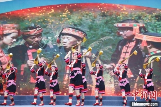 開幕式上,當?shù)噩幾迕癖娨愿挥忻褡逄厣母栉?、瑤服服飾走秀等表演迎接來自四面八方的賓客。