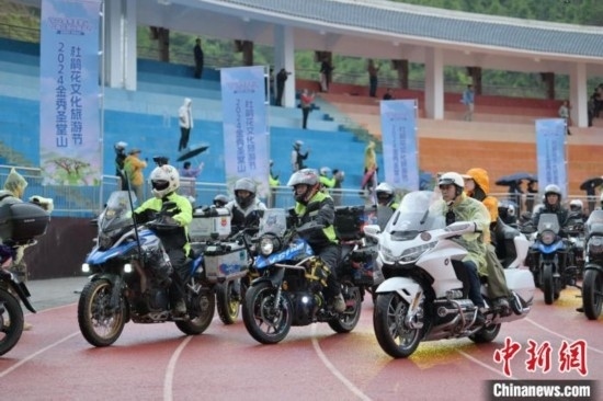 隨后,“5·17”騎行季活動將現(xiàn)場氣氛推向高潮。伴隨著發(fā)車儀式的號令,800余輛機車轟鳴啟動,浩浩蕩蕩的車隊自縣城體育場出發(fā)前往圣堂山。騎行者們在青山綠水間享受著騎行運動的樂趣,感受美麗的杜鵑花海。