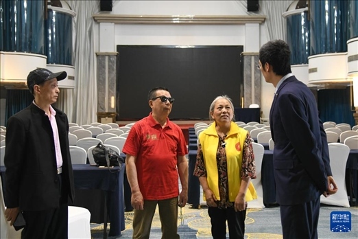 5月6日,張世維(左二)和妻子馮懿蘋(右二)與酒店負(fù)責(zé)人溝通周年慶演出細(xì)節(jié)。新華社記者 胥冰潔 攝