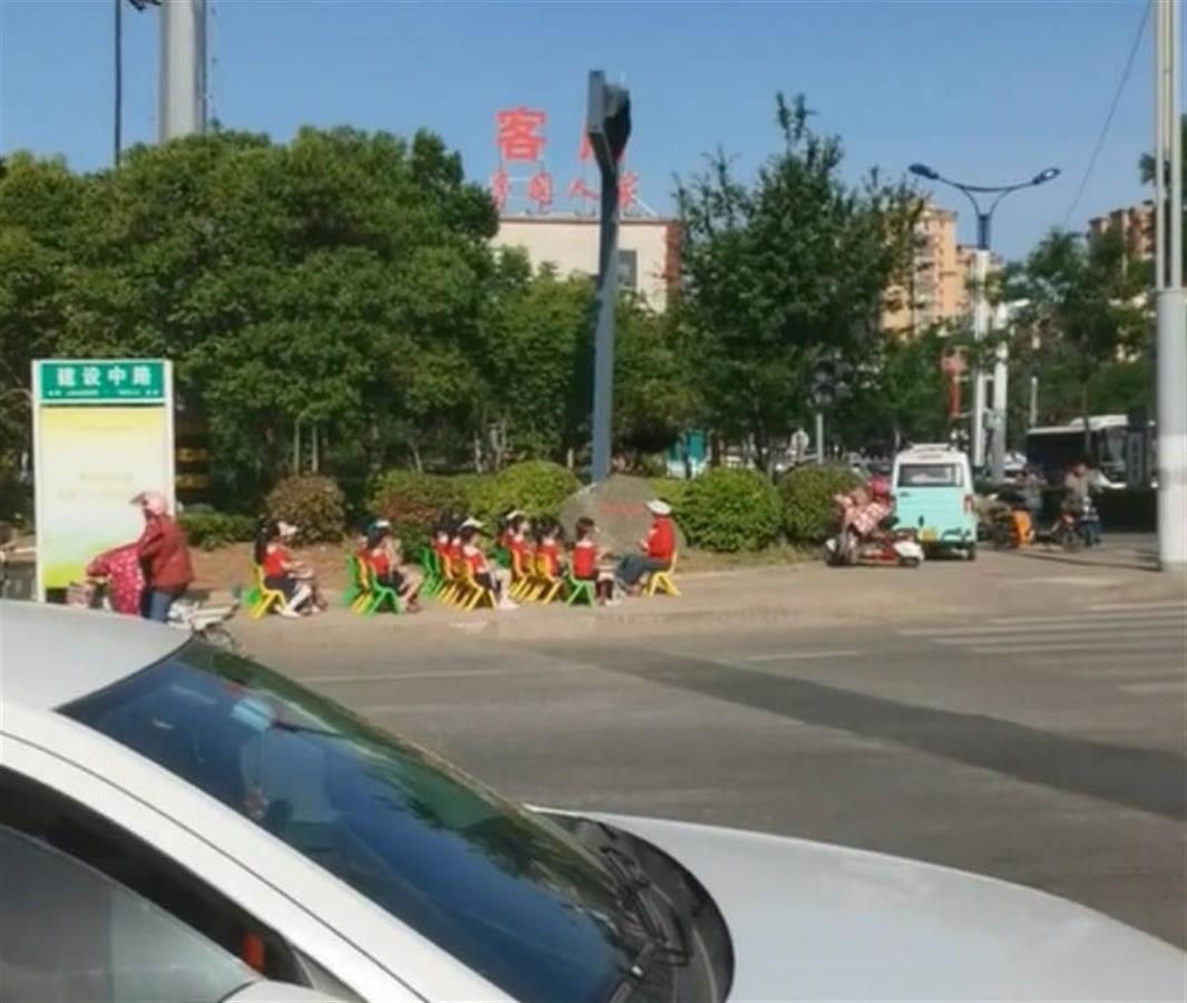 ·山東棗莊一幼兒園孩子坐馬路邊做活動,路人直呼危險,教體局回應:事后已提醒。