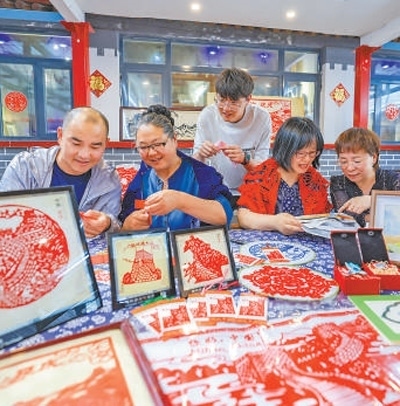 自2018年建成以來(lái),石峽村村史博物館成為村民定期培訓(xùn)的地方,也逐漸成為游客來(lái)石峽村游玩的打卡地之一。博物館以實(shí)物、文字、影像等方式展現(xiàn)了村落歷史、非遺項(xiàng)目、居家生活、農(nóng)耕勞作等內(nèi)容?!拔覀冞€推出了帶有長(zhǎng)城元素的布藝、剪紙、羽毛畫(huà)等互動(dòng)體驗(yàn)項(xiàng)目?!辈┪镳^負(fù)責(zé)人魏曉蕓說(shuō)。