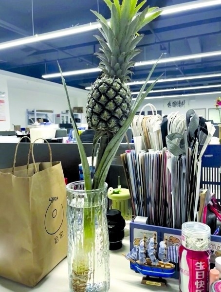 00后楊三日從事新媒體運營工作,她在工位上養(yǎng)了一個菠蘿,“養(yǎng)菠蘿是一件很酷的事情,不僅能觀賞,還能吃,很配我特立獨行的氣質(zhì)。”她說自從養(yǎng)了菠蘿之后,每天上班時心情就變得非常好?!拔业墓の痪拖駸釒в炅忠粯樱崆斑M入了春天?!?/p>