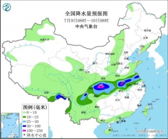 全國降水量預(yù)報圖(7月9日08時-10日08時)