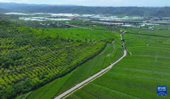 這是寧夏中衛(wèi)市海原縣史店鄉(xiāng)田拐村境內(nèi)的一條柏油農(nóng)村公路(7月24日攝,無(wú)人機(jī)照片)。