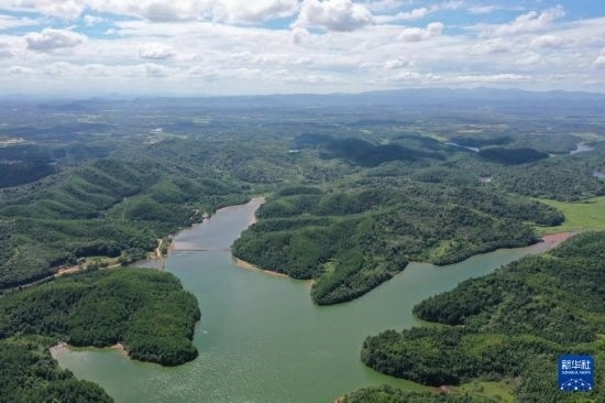 這是江西省撫州市臨川區(qū)秋溪鎮(zhèn)溪山湖水庫(kù)(7月25日攝,無人機(jī)照片)。