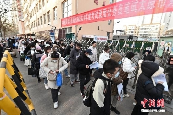 2023年11月26日,山西省太原市,考生步入考場。當(dāng)日,中央機(jī)關(guān)及其直屬機(jī)構(gòu)2024年度考試錄用公務(wù)員公共科目筆試開考。中新社記者 韋亮 攝