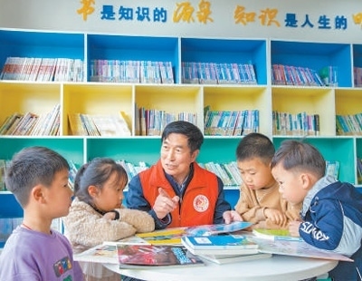 滋潤(rùn)人心江蘇省海安市聘請(qǐng)鄉(xiāng)村閱讀火炬手,營(yíng)造鄉(xiāng)村閱讀氛圍,引領(lǐng)鄉(xiāng)風(fēng)文明建設(shè)。圖為鄉(xiāng)村閱讀火炬手在海安高新區(qū)鳳山村農(nóng)家書屋帶領(lǐng)孩子們閱讀。翟慧勇攝(人民視覺)