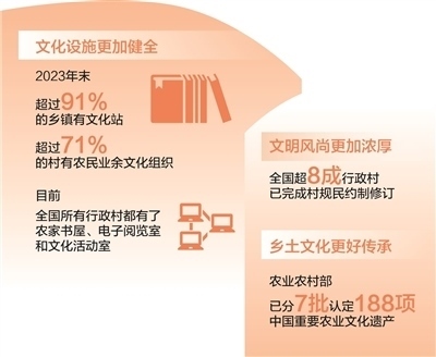 新時(shí)代以來(lái),各地區(qū)各部門深入推進(jìn)農(nóng)村精神文明建設(shè)。加快完善鄉(xiāng)村文化設(shè)施,健全農(nóng)村公共文化體系,農(nóng)家書屋、鄉(xiāng)村文化禮堂等打通文化惠民“最后一公里”;發(fā)展群眾性文體活動(dòng),廣泛開展“村BA”“村超”“村晚”等,豐富鄉(xiāng)村精神文化生活,展現(xiàn)鄉(xiāng)親們積極向上的精氣神;培育挖掘鄉(xiāng)土文化人才,引導(dǎo)文化工作者、科普工作者、文化志愿者等投身鄉(xiāng)村文化建設(shè);賡續(xù)鄉(xiāng)村優(yōu)秀傳統(tǒng)文化,把對(duì)非遺的保護(hù)傳承和開發(fā)利用有機(jī)結(jié)合,將藝術(shù)與古村落、古民居的活化利用有機(jī)結(jié)合;持續(xù)推進(jìn)農(nóng)村移風(fēng)易俗,革除高價(jià)彩禮、人情攀比、厚葬薄養(yǎng)、鋪張浪費(fèi)等陳規(guī)陋習(xí),反對(duì)迷信活動(dòng),推動(dòng)形成文明鄉(xiāng)風(fēng)、良好家風(fēng)、淳樸民風(fēng);健全鄉(xiāng)村治理體系,有效發(fā)揮村規(guī)民約作用,推廣文明積分等方式,激勵(lì)農(nóng)民自覺踐行文明新風(fēng)……這些舉措為加強(qiáng)農(nóng)村精神文明建設(shè)提供了有力抓手,推動(dòng)現(xiàn)代文明理念融入鄉(xiāng)村生活方方面面,為推進(jìn)鄉(xiāng)村全面振興注入新動(dòng)能。