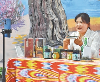 因為電商發(fā)展而受益的不只王曉紅。羅布麻茶、羅布麻蜜、尉犁小油馕、庫爾勒香梨、若羌紅棗、昆侖雪菊……走進總面積近3000平方米的尉犁縣電商直播基地,100多種優(yōu)質(zhì)農(nóng)特產(chǎn)品整齊排列,不少主播正在直播。