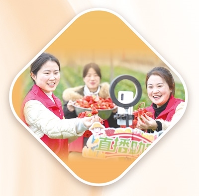 浙江省長興縣畫溪街道,青年黨員干部通過網(wǎng)絡直播幫農(nóng)戶銷售新鮮草莓。