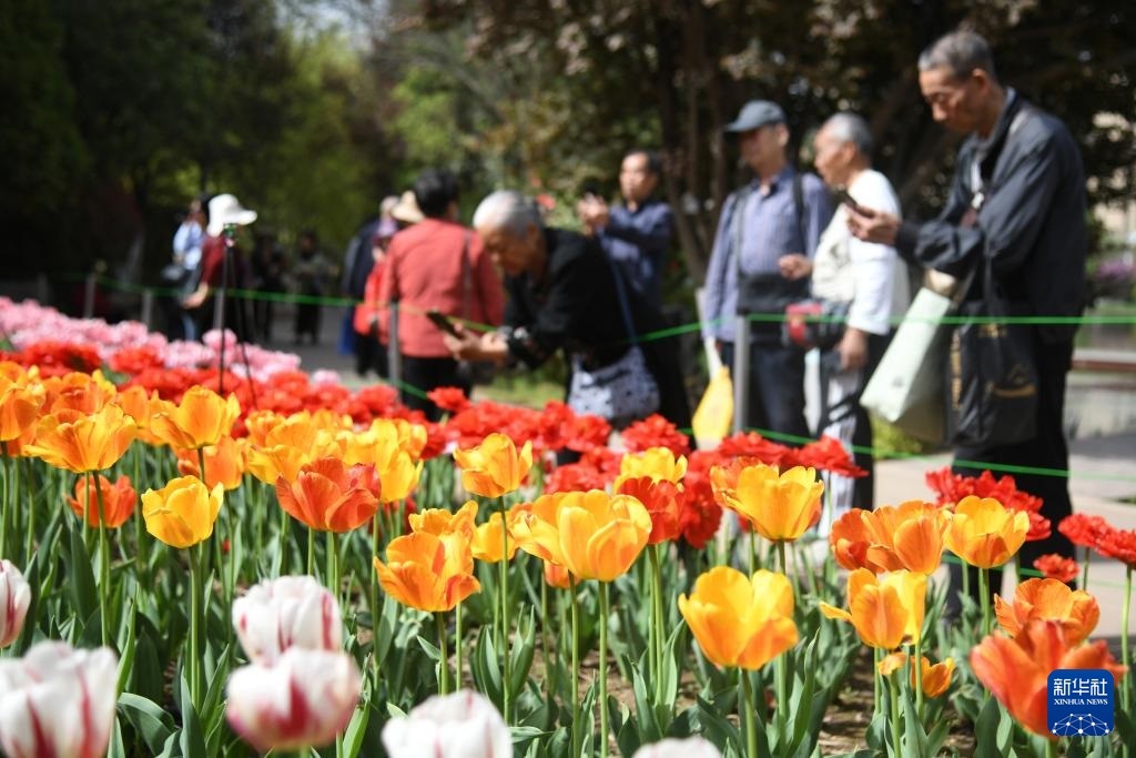 游人在西安植物園觀賞郁金香(4月10日攝)。