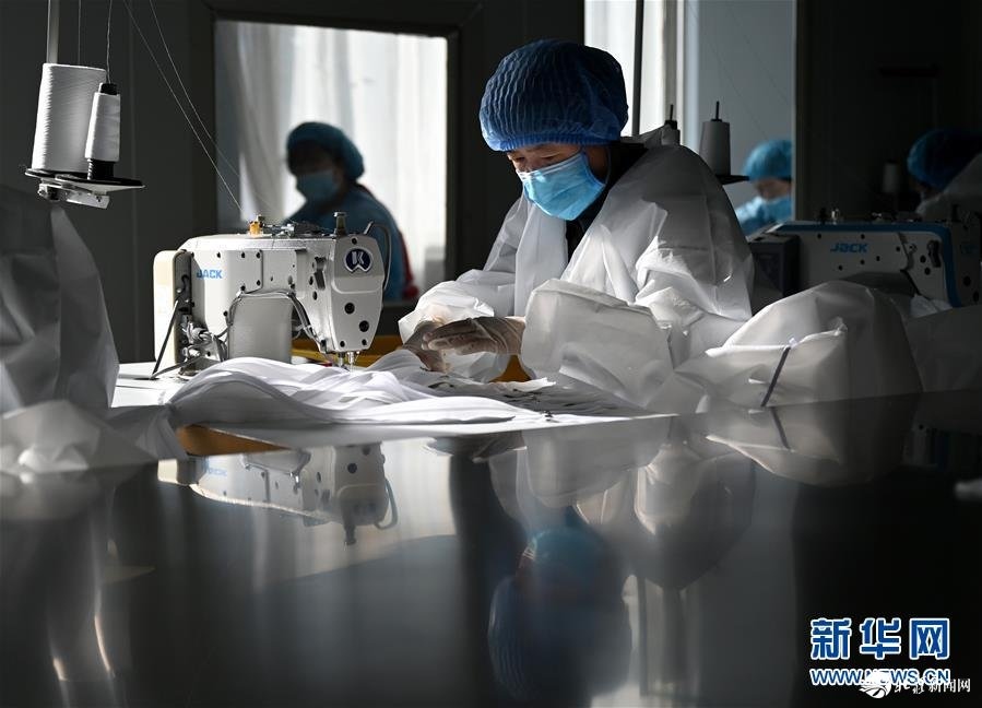 呼和浩特欣龍康醫(yī)療器械有限責(zé)任公司是一家員工不足20人的小型企業(yè),也是內(nèi)蒙古為數(shù)不多能生產(chǎn)醫(yī)用防護(hù)服的企業(yè)之一。新冠肺炎疫情發(fā)生后,公司從1月24日(除夕)就組織員工復(fù)產(chǎn),24小時(shí)連續(xù)作業(yè),生產(chǎn)無(wú)菌醫(yī)用防護(hù)服和隔離服。目前,該企業(yè)每天生產(chǎn)防護(hù)服約400套,全部用于內(nèi)蒙古防治新冠肺炎的一線(xiàn)醫(yī)護(hù)人員。 新華社記者 徐欽 攝