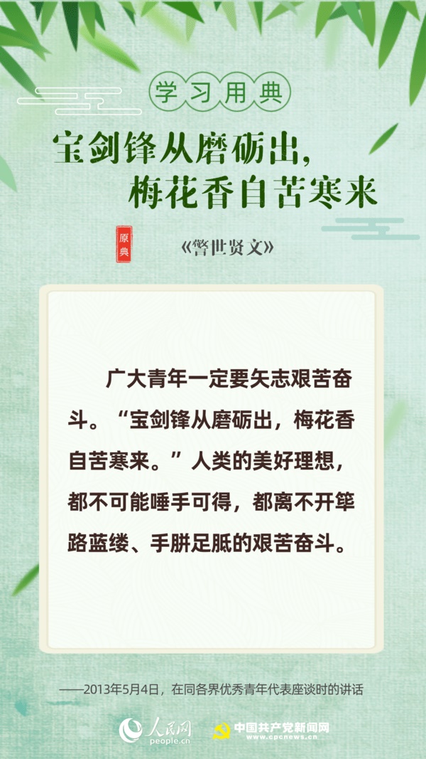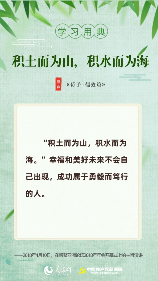 【編者按】“志不求易者成,事不避難者進?!苯?,習近平總書記給中國石油大學(北京)克拉瑪依校區(qū)畢業(yè)生回信,對廣大高校畢業(yè)生提出殷切期望。“人生在勤,勤則不匱”“積土而為山,積水而為?!薄陙?,習近平多次引用詩句典故,激勵包含廣大青年在內的全黨全國各族人民拼搏奮進、埋頭苦干。正值“戰(zhàn)疫”“戰(zhàn)貧”關鍵時刻,人民網·中國共產黨新聞網與您一起回顧習近平講話中關于“奮斗”的10個名句。