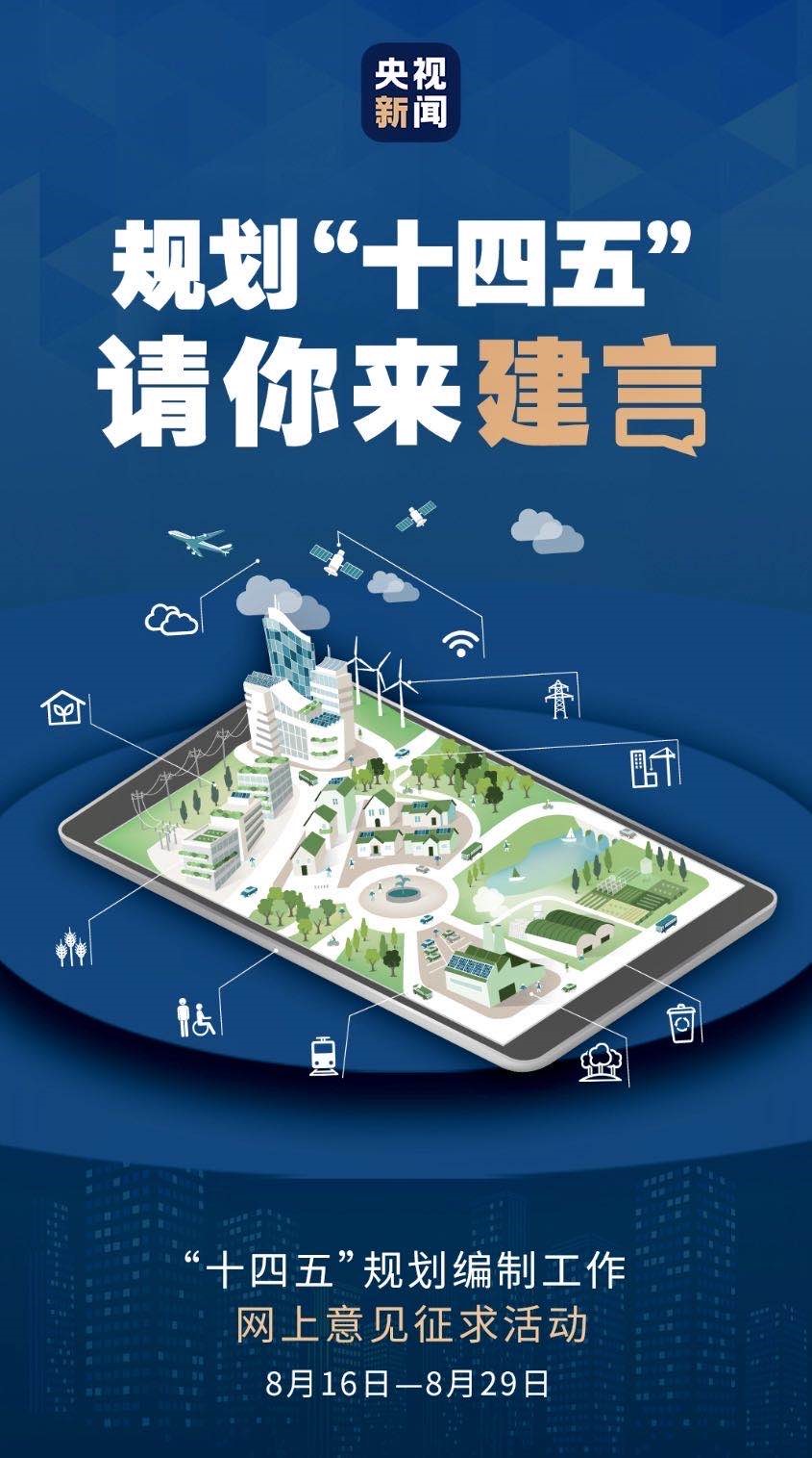 △“十四五”規(guī)劃編制工作網(wǎng)上意見征求活動正在進行。這是央視新聞推出的征集頁面。
