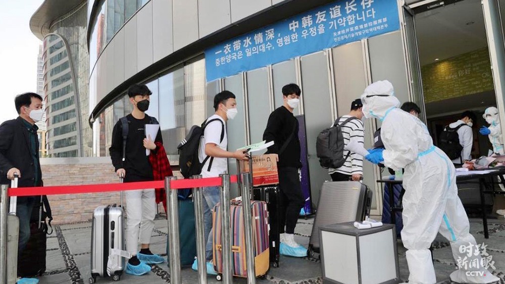△中韓兩國啟動人員往來“快捷通道”。這是來自韓國的企業(yè)員工抵達天津。