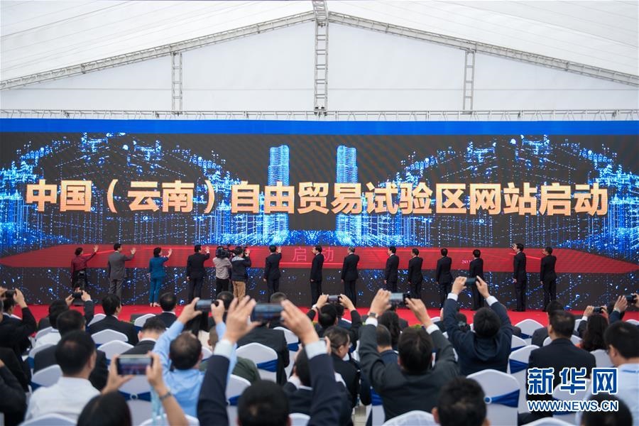 2019年8月30日,在中國(云南)自由貿(mào)易試驗區(qū)掛牌儀式上,云南自貿(mào)區(qū)網(wǎng)站啟動。新華社記者胡超攝