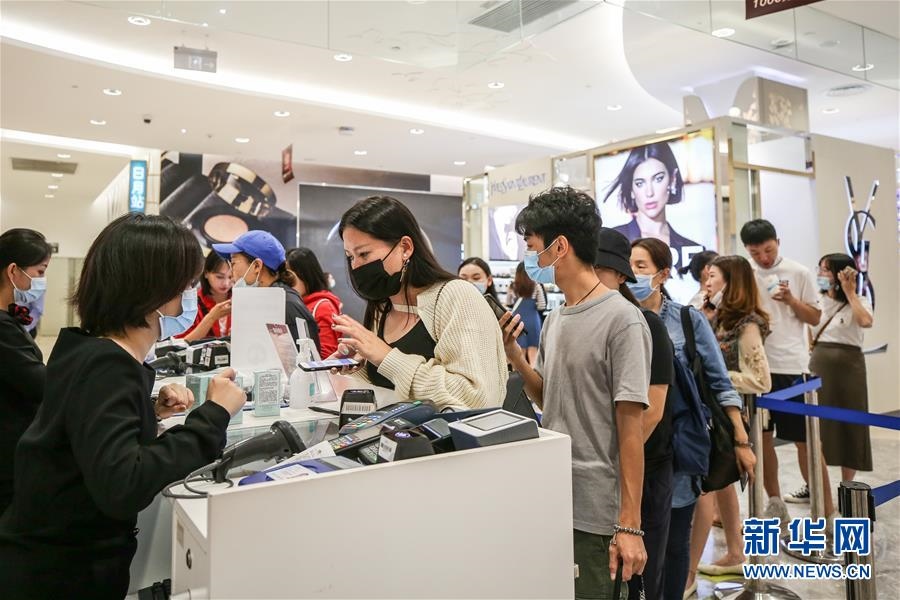 10月27日,消費者在海南省??谑腥赵聫V場免稅店選購商品。新華社記者張麗蕓攝