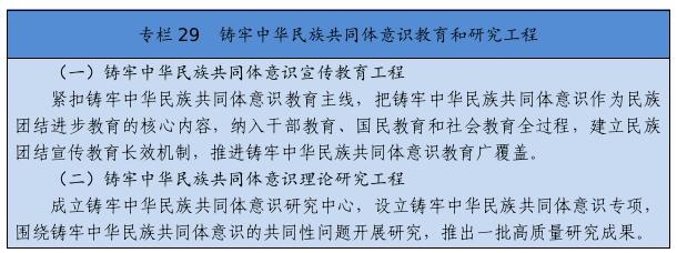 在全社會樹立和突出各民族共享的具有鮮明中華文化特征的文化符號和中華民族視覺形象,打造中國標志。堅定不移推廣普及國家通用語言文字,全面加強國家通用語言文字教育教學,積極穩(wěn)妥推行國家統(tǒng)編教材使用,深化雙語教學模式改革,確保少數(shù)民族學生掌握和使用國家通用語言文字。尊重、支持各少數(shù)民族語言文字的學習和使用。堅持以社會主義先進文化為引領,促進各民族文化交融、創(chuàng)新。提倡文明現(xiàn)代的生活方式,引導和幫助各族群眾追求現(xiàn)代文明生活,推進民族進步。強化全體公民日常行為規(guī)范,完善市民公約、鄉(xiāng)規(guī)民約、學生守則、行業(yè)規(guī)章、職業(yè)規(guī)則、團體章程,營造自覺遵法守法、尊重少數(shù)民族風俗習慣和宗教信仰、維護民族團結的社會氛圍。著力開展興邊富民行動,打牢守邊固邊的民族團結基礎。