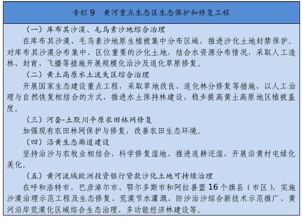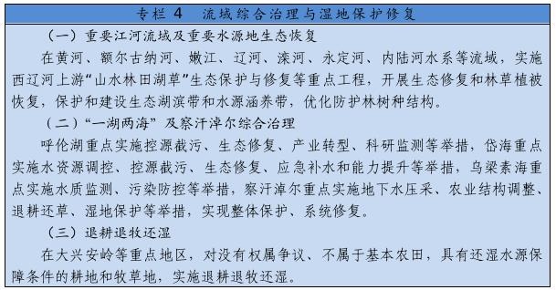 大力推進黃河生態(tài)帶建設,統(tǒng)籌水環(huán)境、水生態(tài)、水資源、水安全、水文化,推進干支流一體化治理,突出抓好十大孔兌、多沙粗砂區(qū)集中來源區(qū)等水土保持治理,實施河道和灘區(qū)綜合提升治理工程,完善水沙調(diào)控機制。深化“一湖兩?!奔安旌鼓谞柹鷳B(tài)環(huán)境綜合治理,創(chuàng)新區(qū)域系統(tǒng)治理和流域整體治理舉措,逐步改善生態(tài)環(huán)境。全面加強嫩江、遼河、內(nèi)陸河水系等流域和達里諾爾、烏拉蓋等濕地生態(tài)保護修復,深入開展地下水超采綜合治理。
