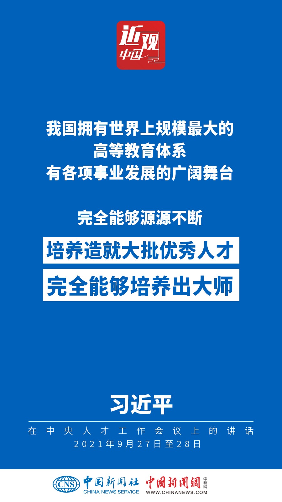 中央人才工作會(huì)議9月27日至28日在北京召開。中共中央總書記、國家主席、中央軍委主席習(xí)近平出席會(huì)議并發(fā)表重要講話。他強(qiáng)調(diào)——