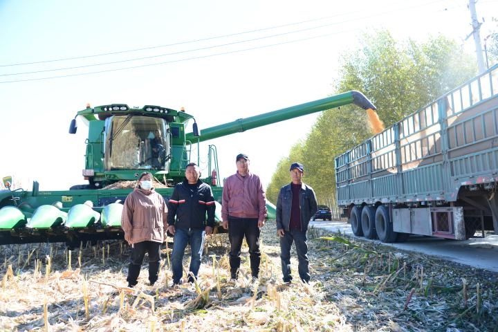 圖為吉林省松原市大洼鎮(zhèn)民樂村春峰種植專業(yè)合作社秋收?qǐng)鼍啊?新華社記者徐子恒攝)