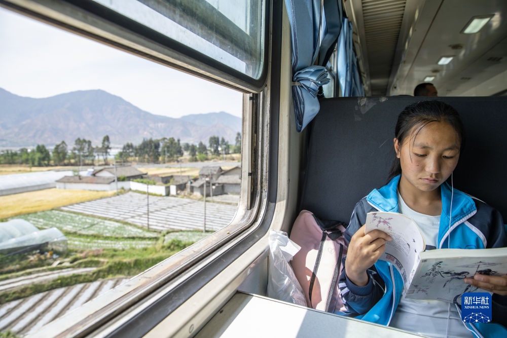 2021年4月15日,一名喜德縣瓦爾學(xué)校的學(xué)生乘坐5634次列車回家。5633/5634次列車被人們親切地稱為“慢火車”,陪伴著四川大涼山地區(qū)幾代人的成長(zhǎng),是百姓外出的“公交列車”,也是孩子們求學(xué)的“校車”。新華社記者 沈伯韓攝