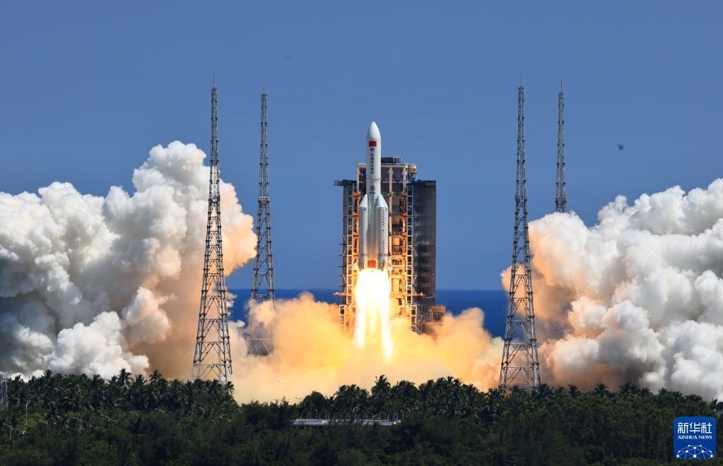 2022年7月24日,搭載問天實(shí)驗(yàn)艙的長征五號(hào)B遙三運(yùn)載火箭,在我國文昌航天發(fā)射場(chǎng)點(diǎn)火發(fā)射。新華社記者李剛攝