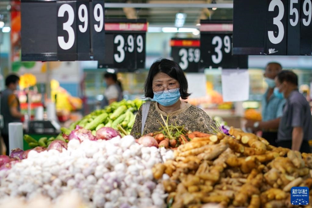 市民在江蘇省無錫市經(jīng)開區(qū)華潤萬家超市購物(2022年7月7日攝)。江蘇省無錫市在做好疫情防控的同時(shí),積極制定相關(guān)方案,制作城市保供地圖,組織大型商超、市場(chǎng)正常運(yùn)營,全力保供穩(wěn)價(jià),端穩(wěn)市民“菜籃子”。新華社記者李博攝