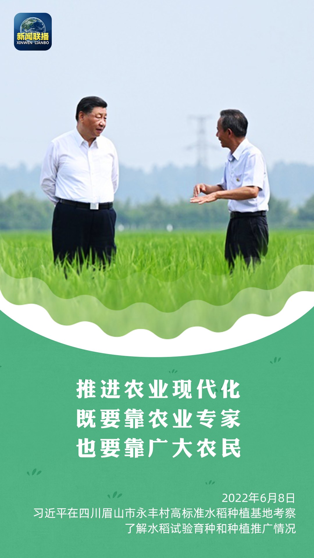 今年6月8日,習(xí)近平總書記在四川永豐村考察,走進(jìn)稻田察看秧苗長(zhǎng)勢(shì),向身邊的農(nóng)業(yè)專家、四川農(nóng)業(yè)大學(xué)教授馬均仔細(xì)詢問著秧苗的情況。