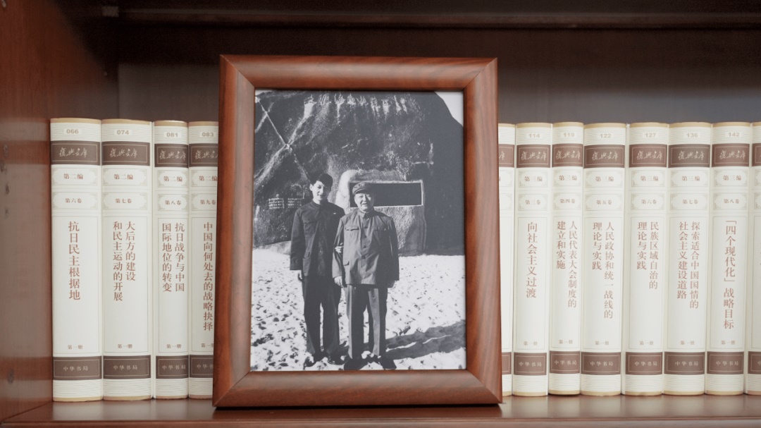 書(shū)架上,還增加了兩張習(xí)近平總書(shū)記年輕時(shí)的照片。