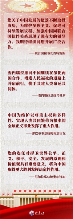 聯合國秘書長古特雷斯表示,您關于中國發(fā)展的愿景不斷取得成功,為維護多邊主義、促進可持續(xù)發(fā)展議程、加強中國同聯合國伙伴關系展現了強有力的領導力。我期待繼續(xù)同您開展廣泛合作。