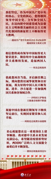 多國領導人在賀電賀函中表達他們對習近平全票當選的祝賀與敬佩之情。
