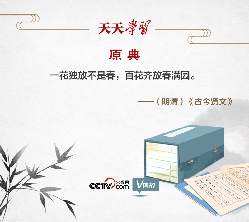 “一花獨(dú)放不是春,百花齊放春滿園”,意思是,一枝單獨(dú)開放的花朵不能代表春天的到來,只有百花競艷才是人間春色。這句民諺之所以廣為流傳,是因?yàn)轱柡羁陶芾恚阂?、闡述了整體和部分的辯證關(guān)系,“一花”是部分,“百花”是整體,部分的功能是較小的,要以整體發(fā)展帶動部分發(fā)展;二、體現(xiàn)了聯(lián)系的觀點(diǎn),聯(lián)系具有普遍性,“一花”和“百花”是相互聯(lián)系的,因此要尊重文化的多樣性;三、說明了事物是客觀的和發(fā)展變化的,“百花齊放”是必然的,因此要順應(yīng)歷史潮流。